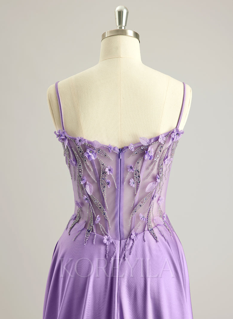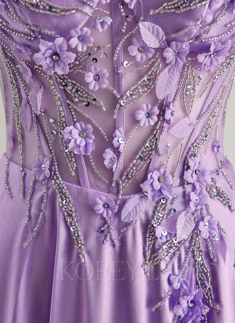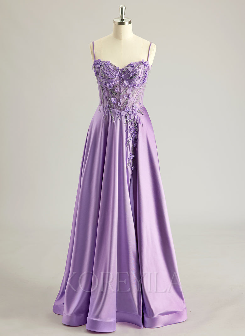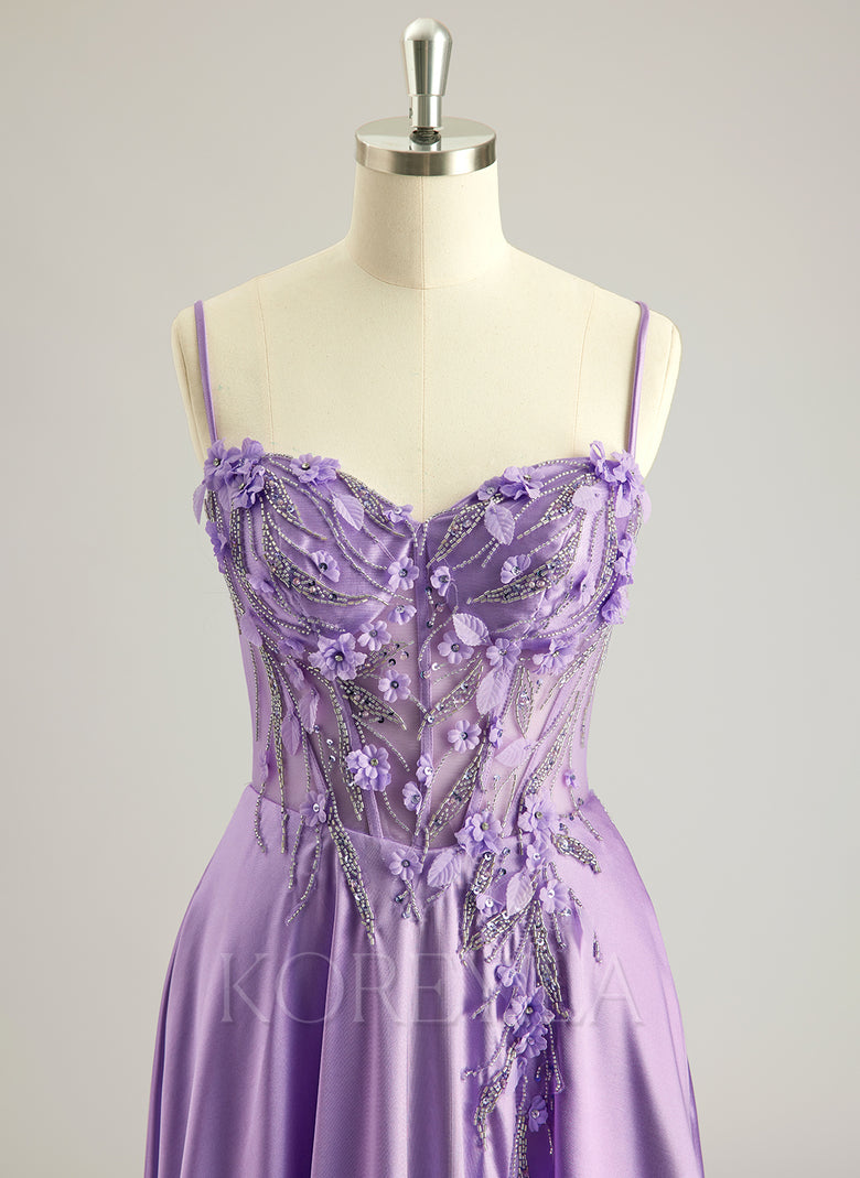 Spaghetti Straps Sweetheart Elegant Vintage Print & Floral Beautiful Back Beading Rhinestone Sequins 3D Floral Silky Satin A-line Maxi Dress