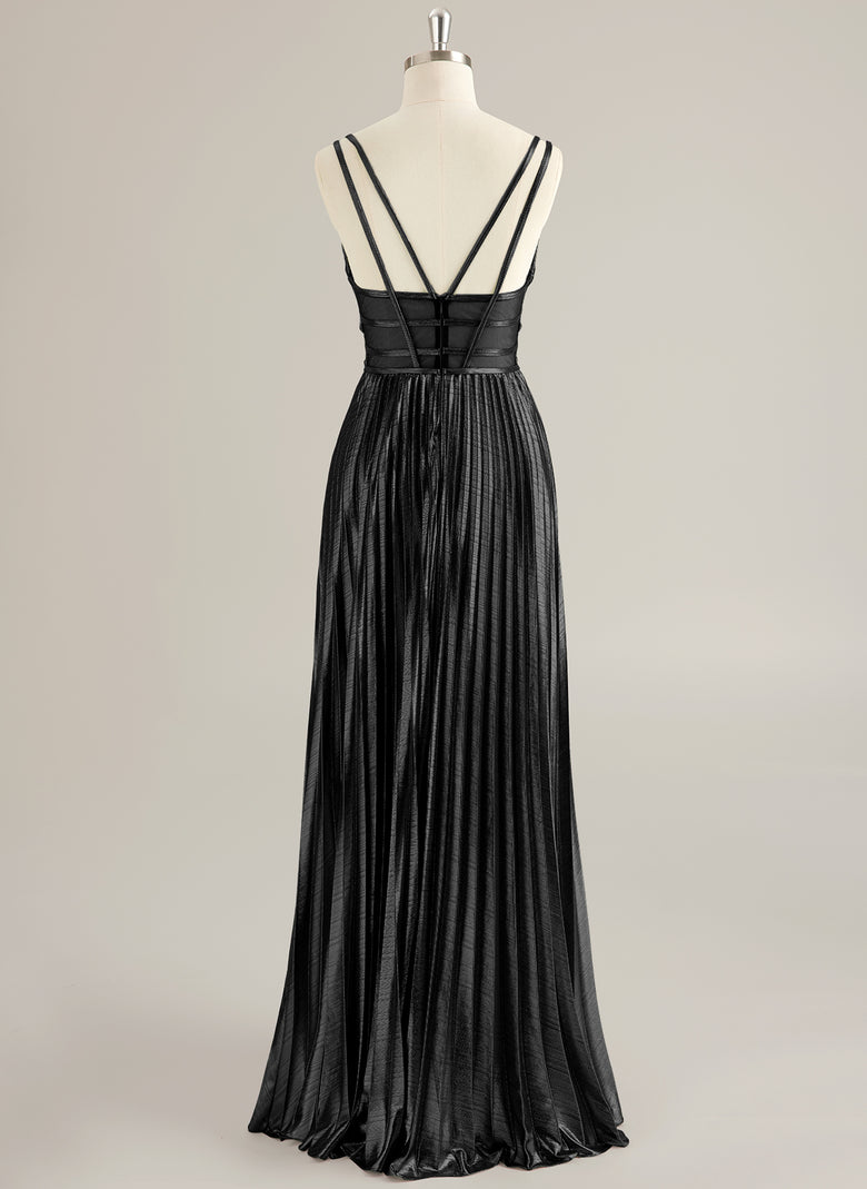 Spaghetti Straps V-Neck Sexy Sparkle & Shine Vintage Beautiful Back Modest Prom Dresses Pleated Jersey A-line Maxi Dress