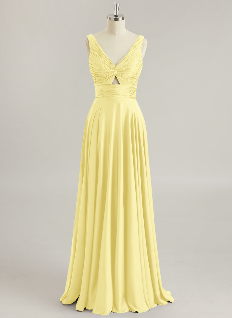 Sleeveless V-Neck Elegant Sweet & Flow Vintage Cut Out Simple Beautiful Back Pleated Silky Satin A-line Maxi Dress