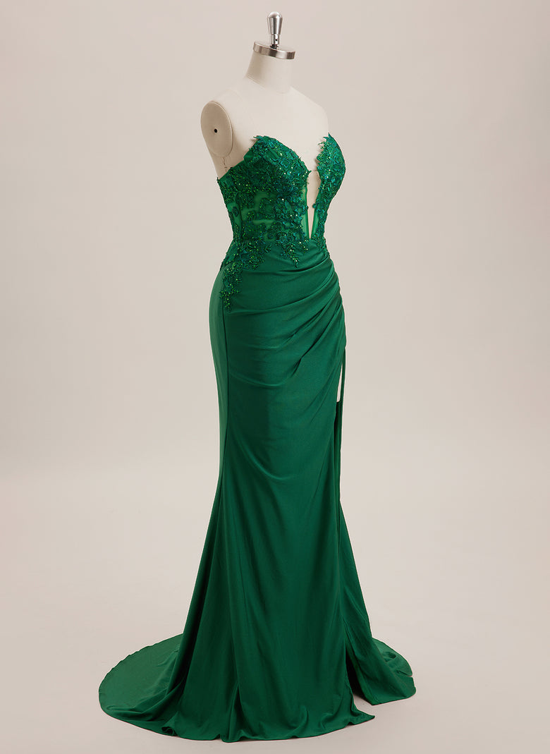 This A-line Maxi dress features a V-neckline, sweeping train, and sparkling sequins. Made of soft jersey fabric, it offers a flattering fit and elegant style. Perfect for special occasions, this dress adds a touch of glamour and sophistication to your wardrobe.