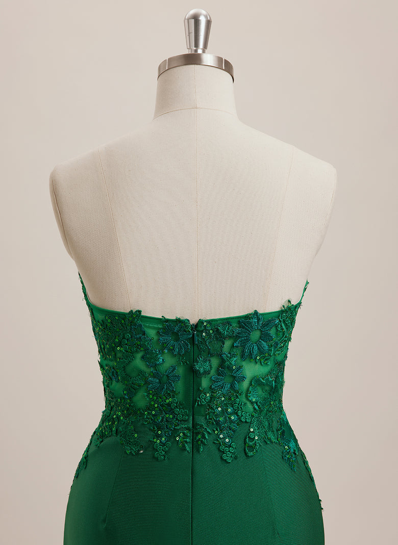 Great dress for a wedding. Love the sleeves. The slit is perfect for my height. Love the color green for this dress.