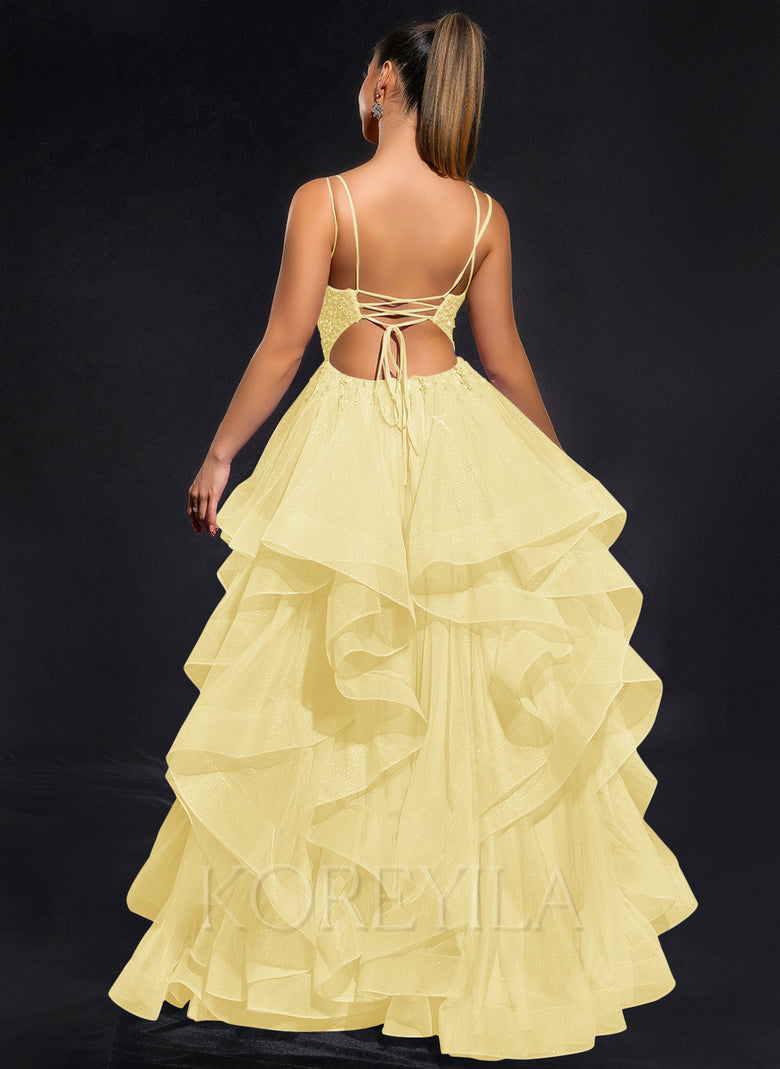 Sleeveless V-Neck Sequins Tulle Trumpet/Mermaid Maxi Dress