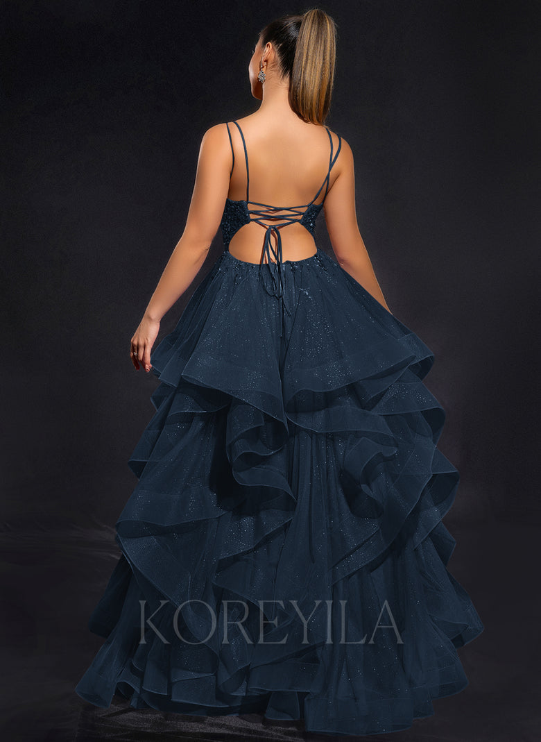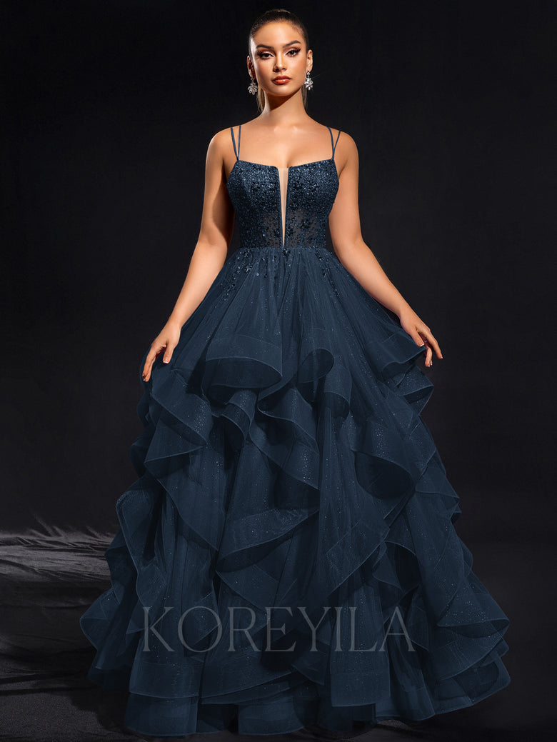 Elevate your evening look with our Ball-Gown/Princess Scoop Floor-Length Tulle Maxi Dress. Its elegant scoop neckline and flowing ball-gown silhouette will make you feel like a modern-day princess. The intricate rhinestone beading adds just the right amount of sparkle to this enchanting dress. Perfect for any formal occasion.