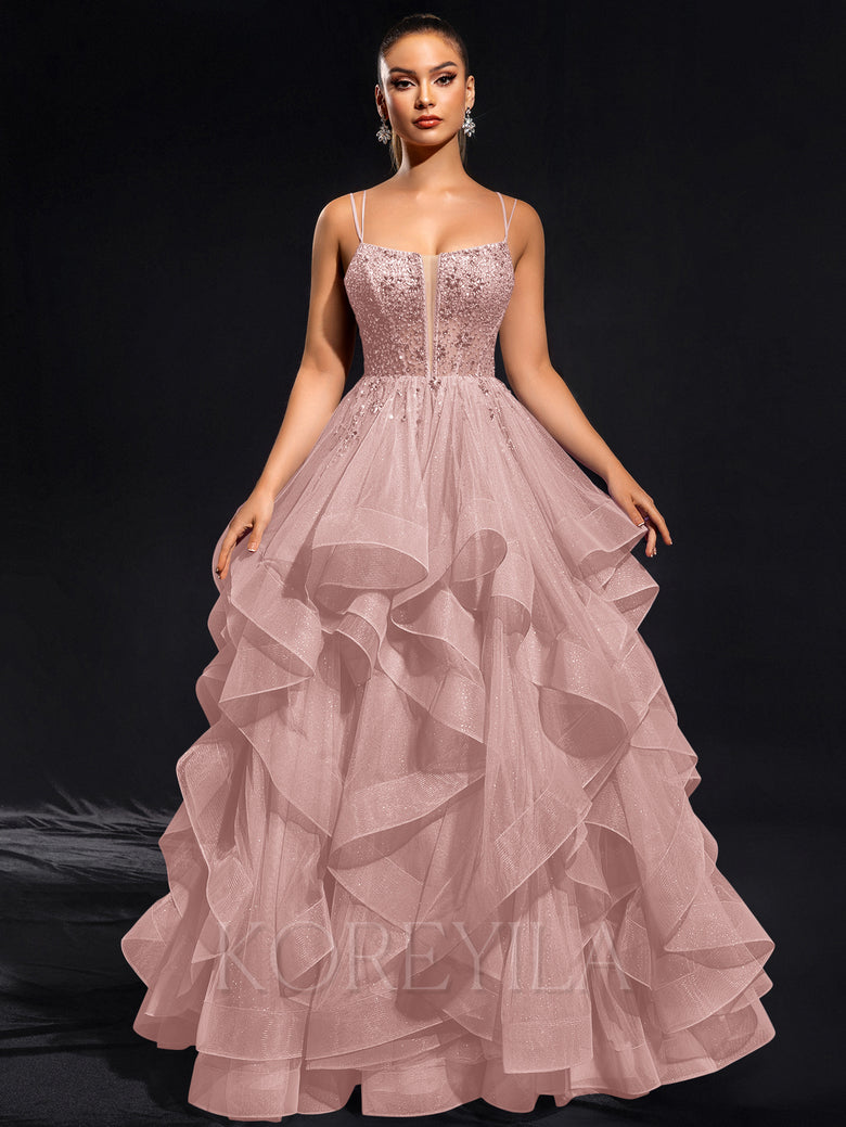 Elevate your evening look with our Ball-Gown/Princess Scoop Floor-Length Tulle Maxi Dress. Its elegant scoop neckline and flowing ball-gown silhouette will make you feel like a modern-day princess. The intricate rhinestone beading adds just the right amount of sparkle to this enchanting dress. Perfect for any formal occasion.