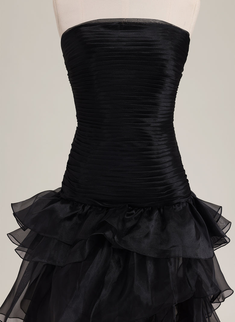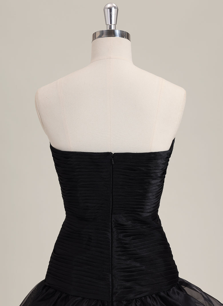 This sleeveless ball-gown prom dress features a floor-length organza skirt that creates a graceful, princess-like silhouette. The delicate ruffle tails add a touch of elegance and movement, making it an ideal choice for formal occasions. Crafted to combine classic charm with modern sophistication, this dress ensures you stand out with refined style and comfort throughout your event.