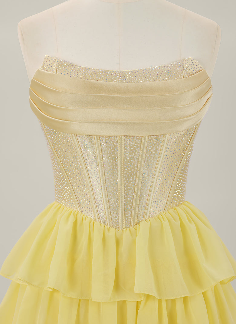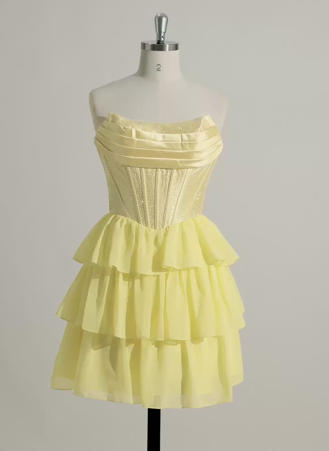 This sleeveless chiffon homecoming dress features a graceful ball-gown silhouette with delicate ruffles that add dimension and movement. Its pleated neckline enhances sophistication, while rhinestone embroidery provides a subtle, elegant sparkle. Designed for comfort and style, this short dress is ideal for making a refined statement at any special event.