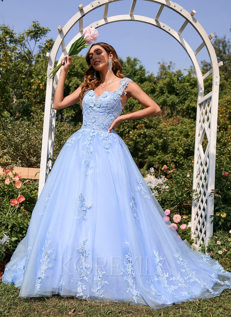 Ball-Gown/Princess Sweetheart Court Train Tulle Lace Prom Dresses