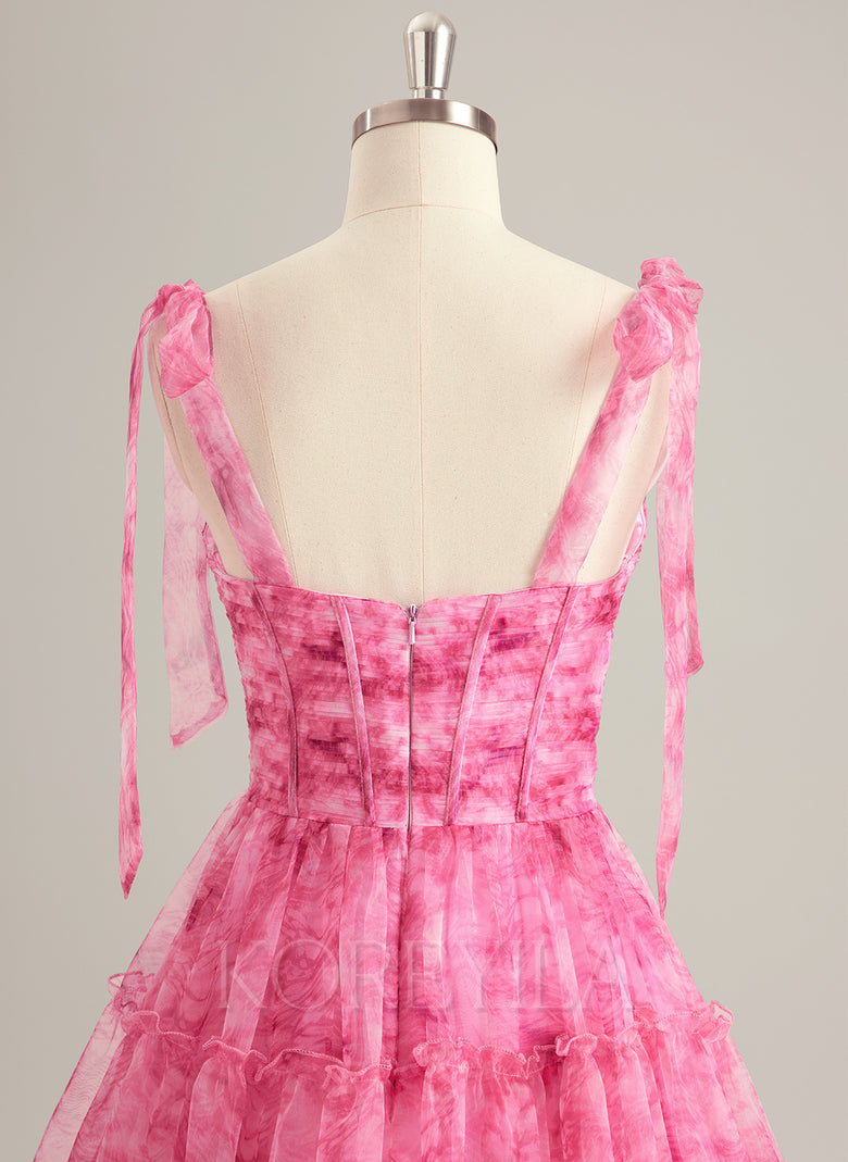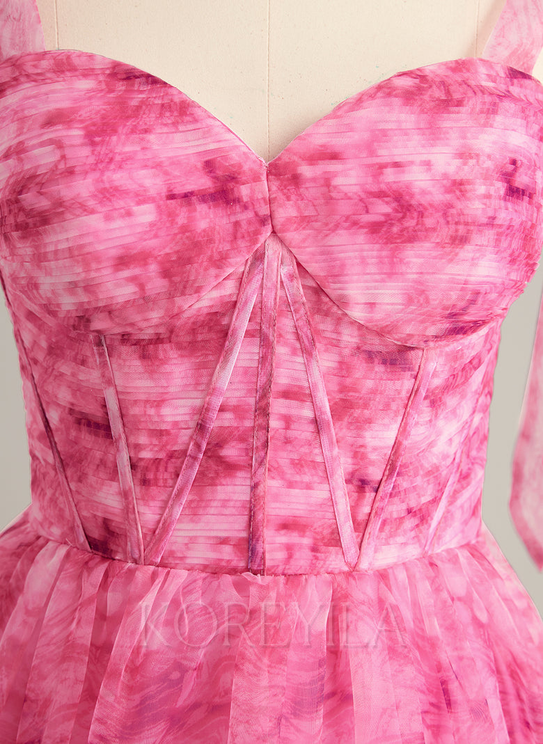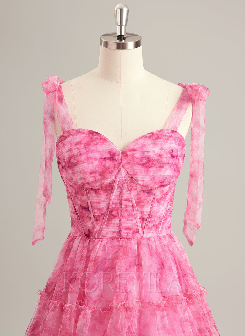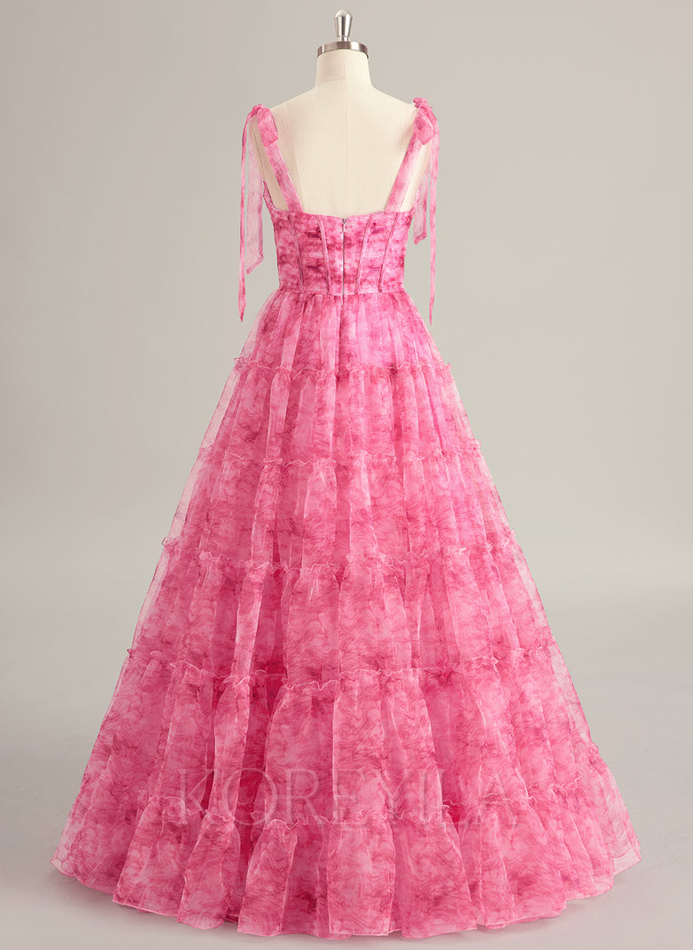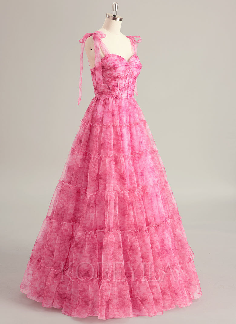 Sleeveless Sweetheart Sweet & Flow Print & Floral Beautiful Back Tiered Prom Bow Organza Ball-Gown/Princess Maxi Dress