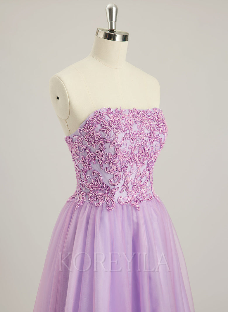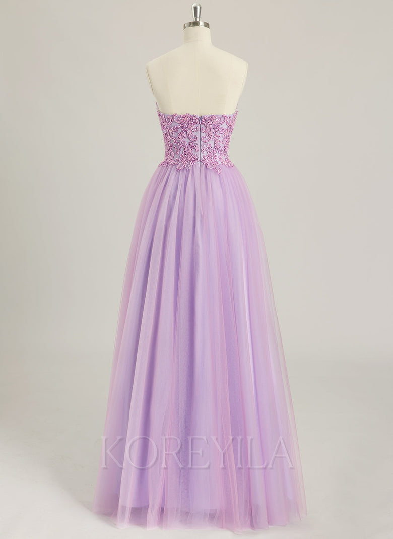 Ball-Gown/Princess Sweetheart Floor-Length Tulle Prom Dresses With Beading