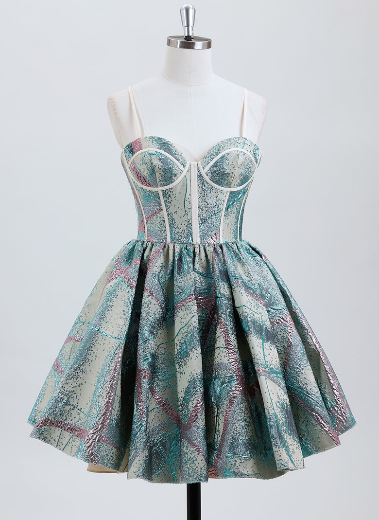 This Ball-Gown/Princess Sweetheart Short Jacquard Homecoming Dress combines classic elegance with modern charm. Crafted from jacquard fabric, it offers a structured silhouette that enhances your figure. The sweetheart neckline adds a romantic touch, while the short length ensures comfort and ease of movement, perfect for dancing the night away. Ideal for homecoming or special occasions, this dress balances sophistication with youthful style.