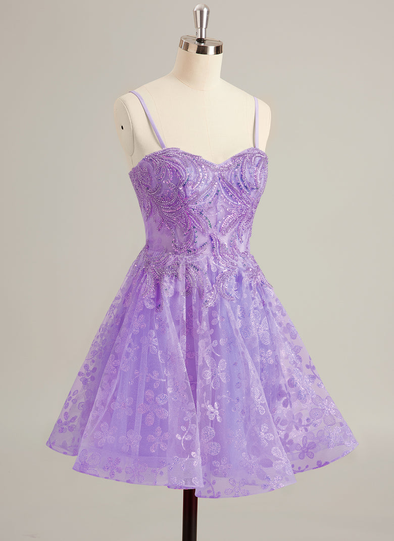 Ball-Gown/Princess Sweetheart Short/Mini Tulle Prom Dresses With Beading Sequins