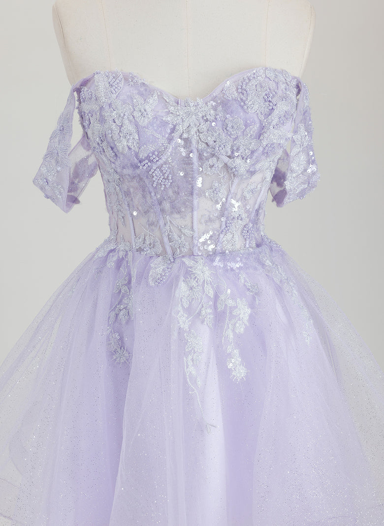This Ball-Gown/Princess Sweetheart Short Tulle Homecoming Dress features a romantic sweetheart neckline and a voluminous tulle skirt that creates a classic princess silhouette. Intricate beading and sequins embellish the bodice, adding subtle sparkle and texture. The short length ensures comfort and freedom of movement, making it an elegant and youthful choice for homecoming celebrations.