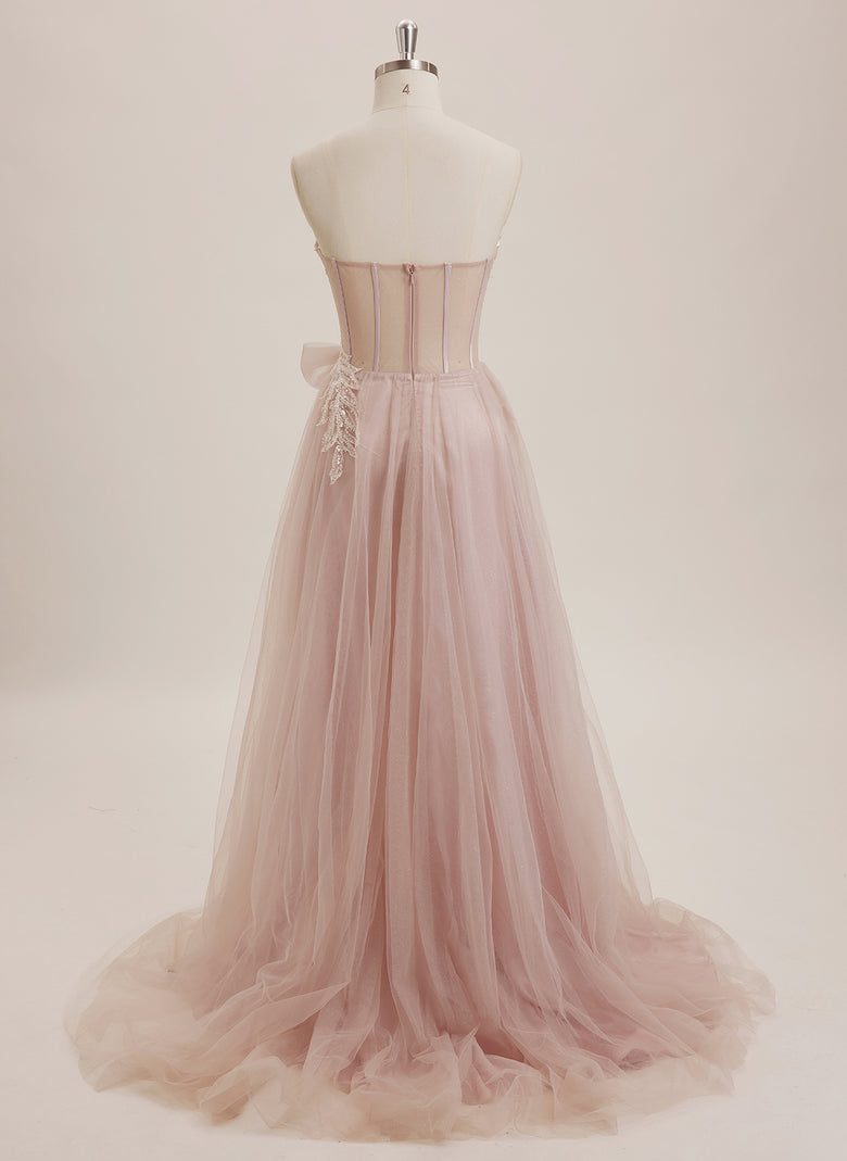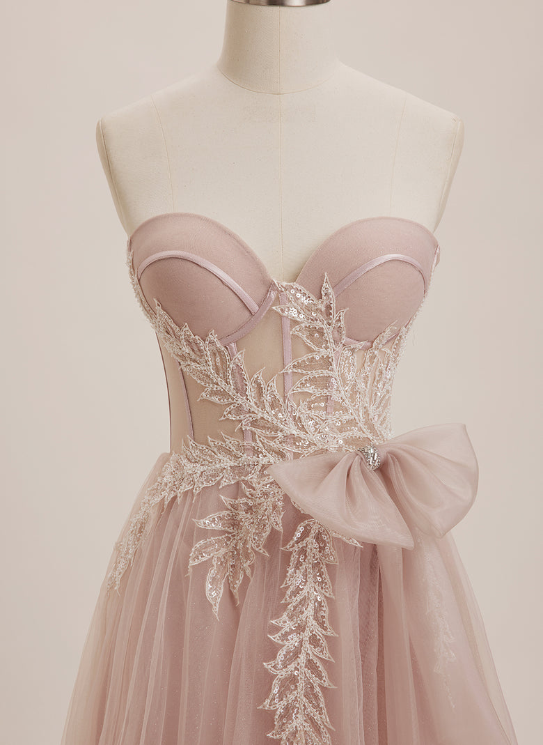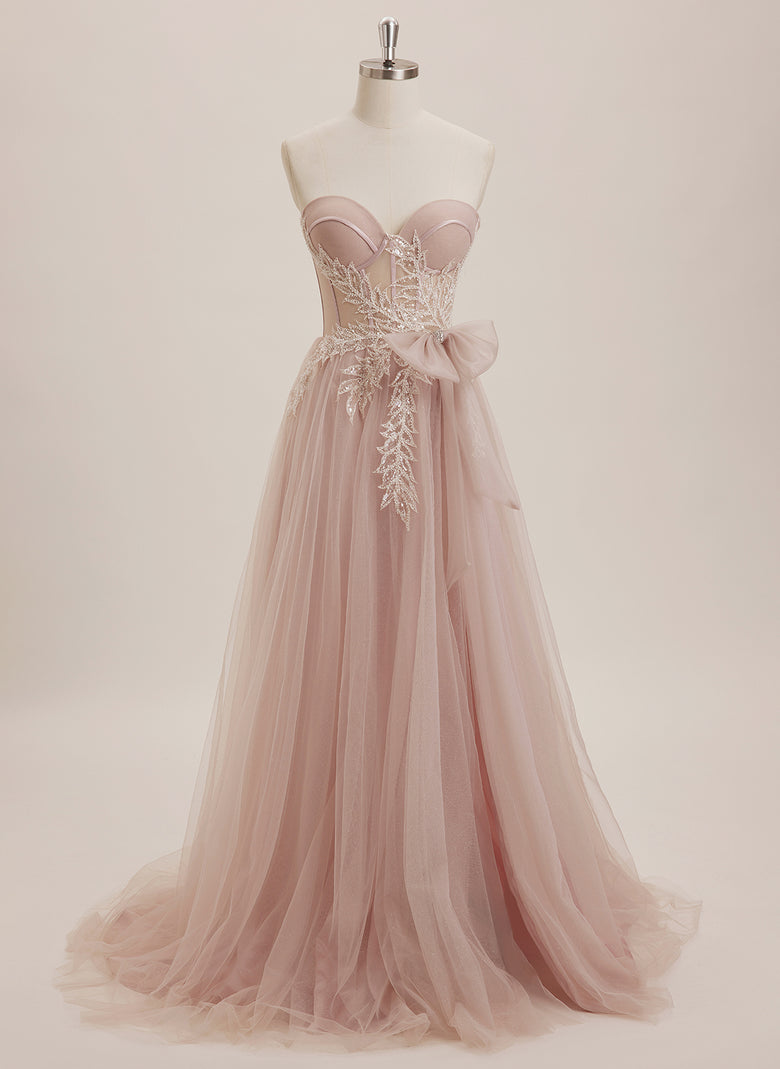 This elegant Ball-Gown/Princess Sweetheart dress features a sweeping train, delicate tulle fabric, and sparkling sequins and rhinestones. With its flattering sweetheart neckline and charming bow detail, this dress is perfect for special occasions. Feel like a princess and make a statement in this stunning maxi dress.