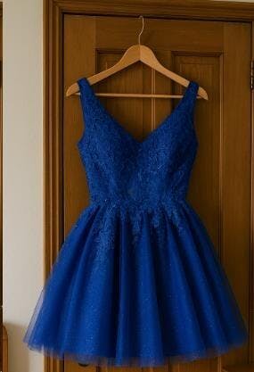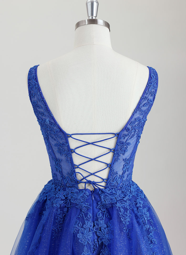 This Ball-Gown/Princess V-Neck Short Tulle Homecoming Dress features a flattering V-neckline and a voluminous tulle skirt that creates a classic princess silhouette. Delicate lace appliques adorn the bodice, adding intricate texture and elegance. The short length offers comfort and ease of movement, making it an ideal choice for homecoming events where timeless style meets youthful grace.