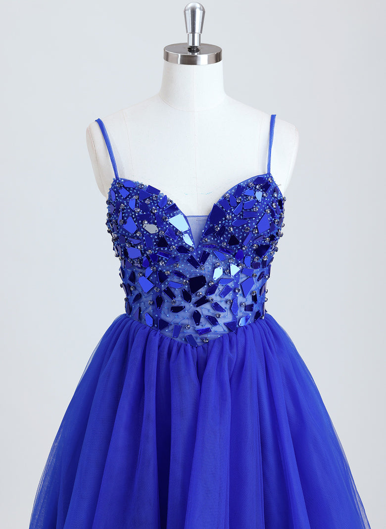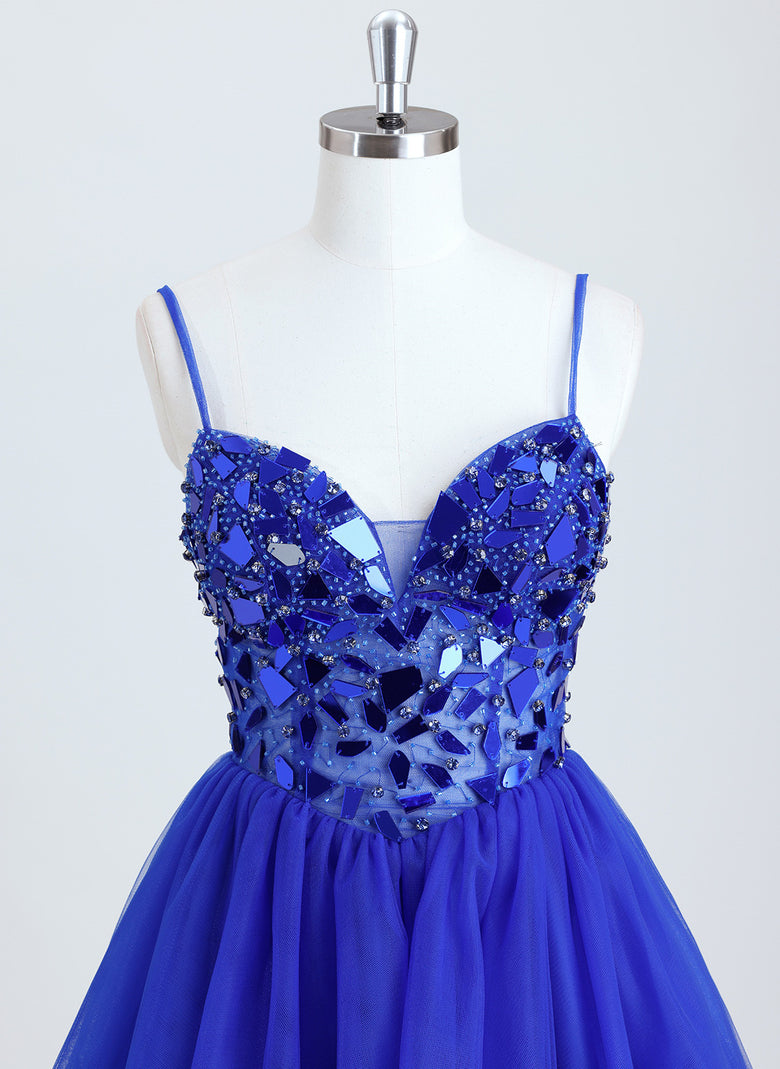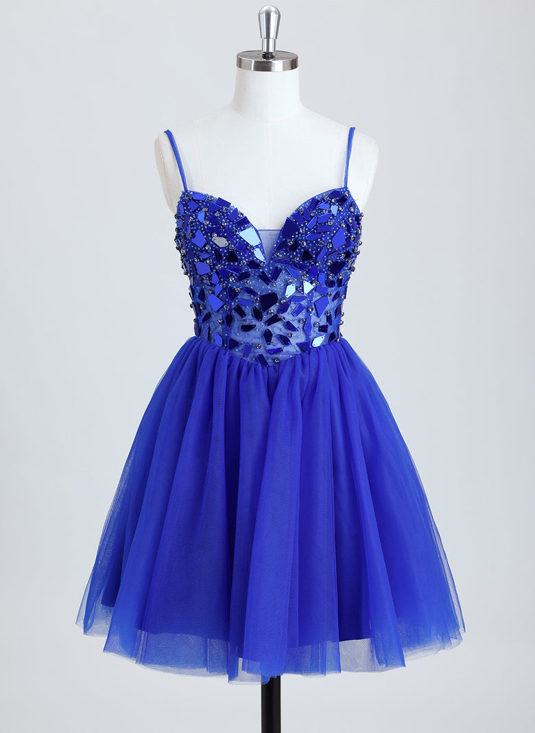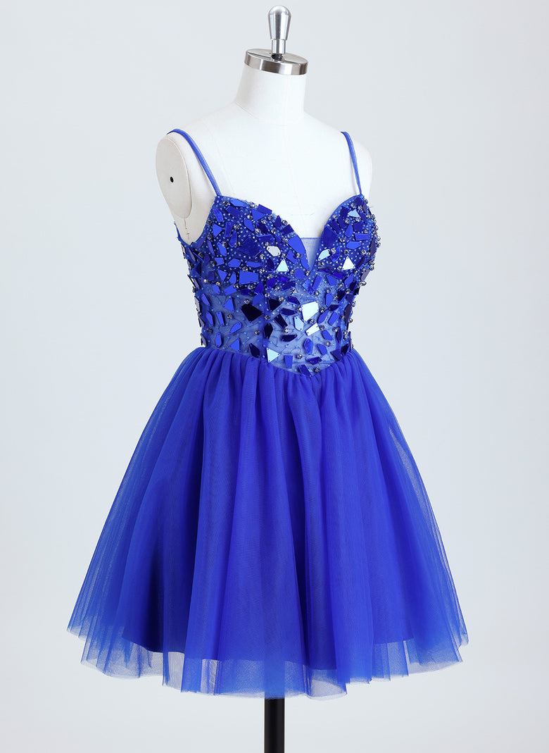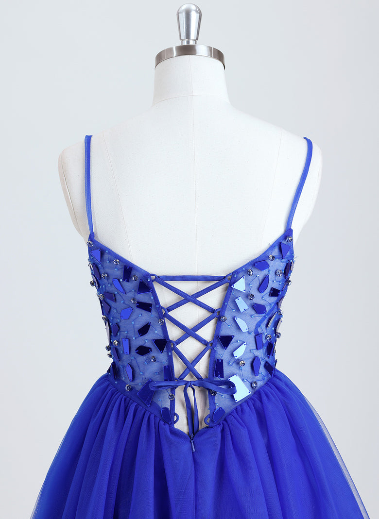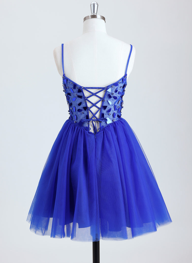 This Ball-Gown/Princess V-Neck Short Tulle Homecoming Dress features a flattering V-neckline and a voluminous tulle skirt that creates a classic princess silhouette. Adorned with intricate rhinestone beading and sequins, it offers a dazzling sparkle that enhances its elegant design. The short length provides comfort and freedom of movement, making it an ideal choice for homecoming events where sophistication meets youthful glamour.