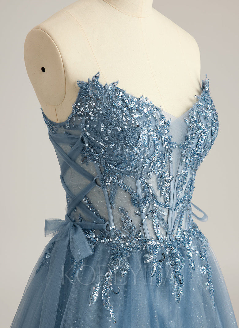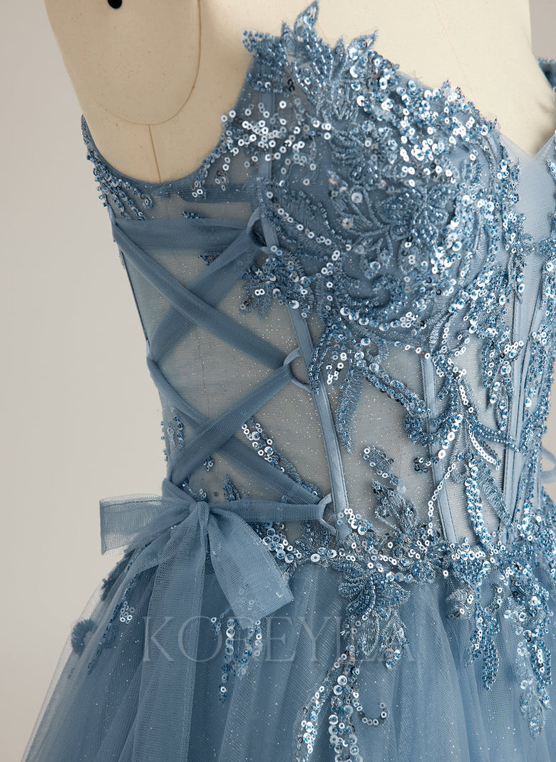 Sleeveless V-Neck Elegant Sparkle & Shine Vintage Beautiful Back Corset Modest Prom Dresses Beading Sequins Tulle Ball-Gown/Princess Maxi Dress
