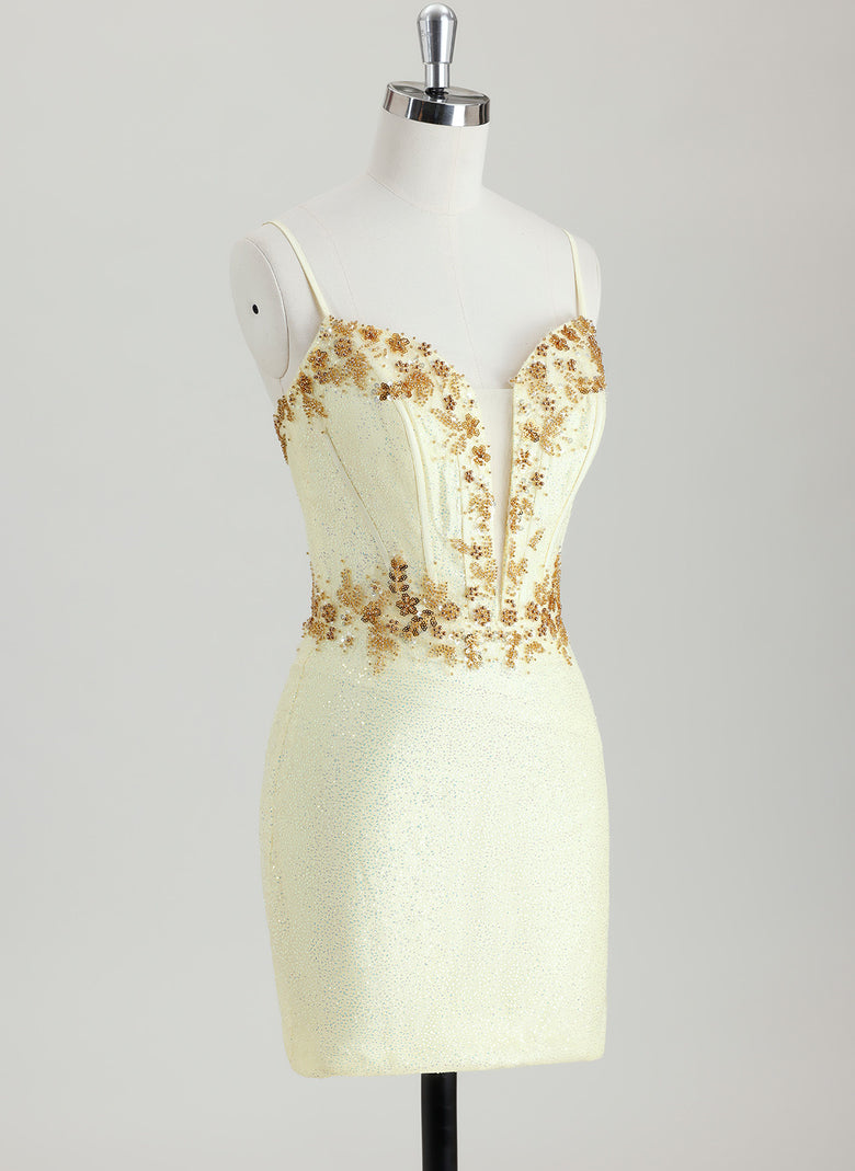 This Bodycon V-Neck Short Sequin Homecoming Dress features a sleek, curve-hugging silhouette designed to enhance your figure. The V-neckline adds a flattering touch, while intricate beading and sequins create a dazzling, light-catching effect. Its short length offers comfort and freedom of movement, making it a sophisticated and glamorous choice for homecoming events.
