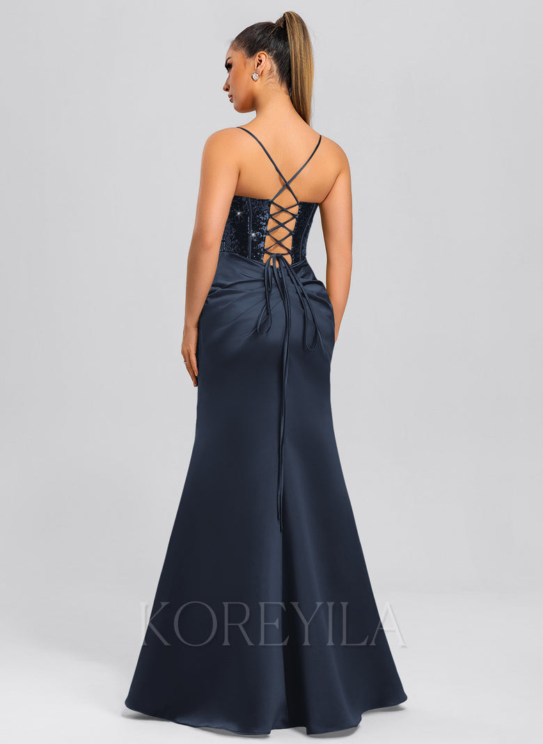Sheath/Column Cowl Floor-Length Sequin Satin Maxi Dresses With Sequins