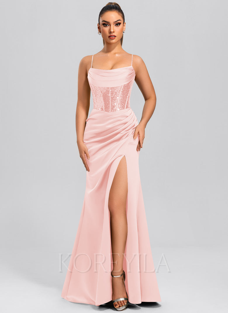 Sheath/Column Cowl Floor-Length Sequin Satin Maxi Dresses With Sequins
