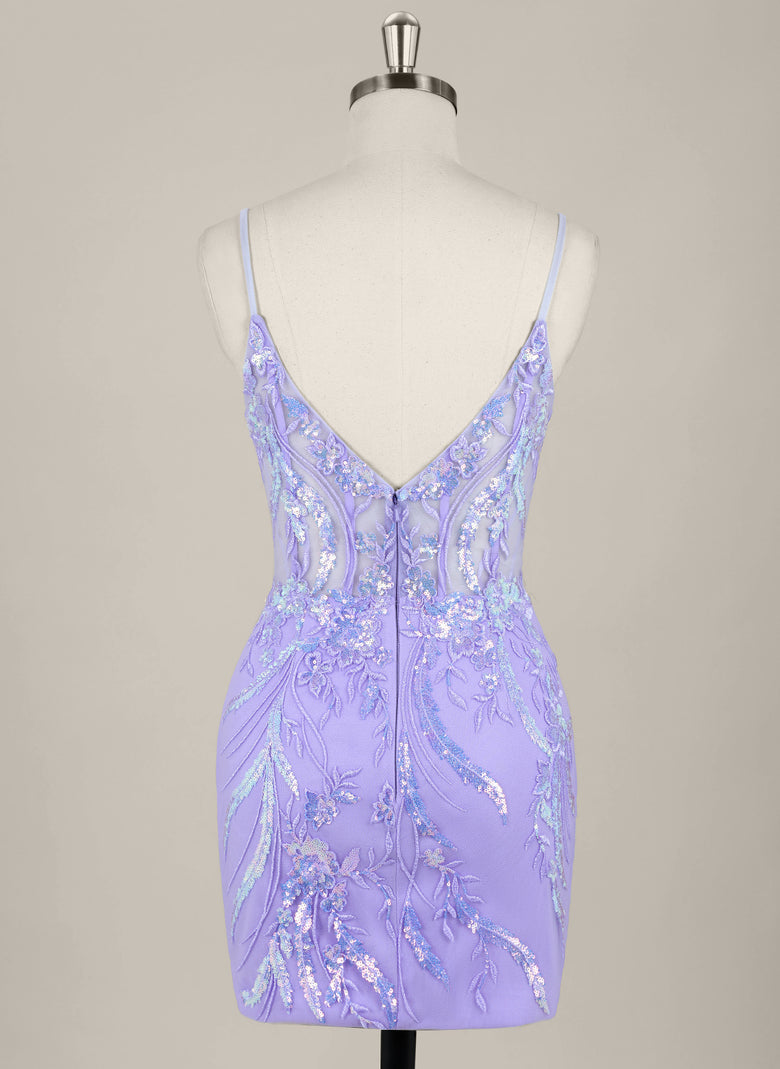 Sheath/Column Sleeveless Short Lace Homecoming Dress With Sequins