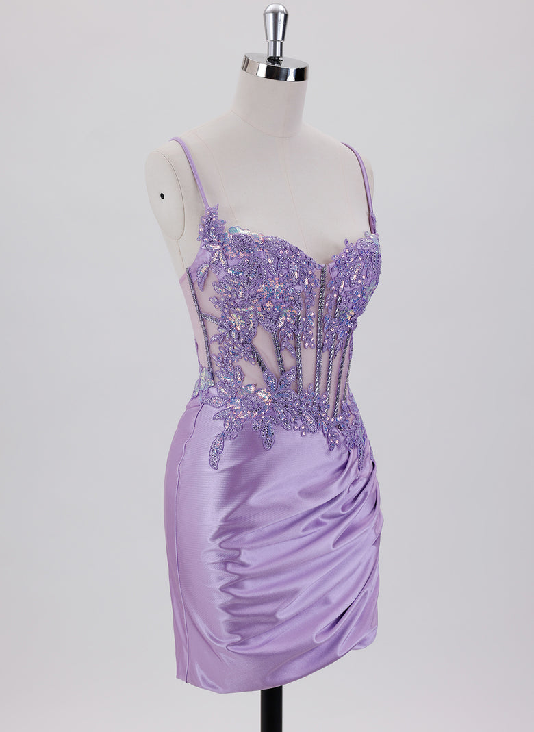 This sleeveless sheath dress is crafted from smooth satin, designed to hug the silhouette with a flattering short length ideal for homecoming occasions. Sequins embellish the dress subtly, adding refined sparkle, while the transparent back introduces a modern, elegant element that enhances its sophisticated appeal. Perfect for those seeking a stylish balance of classic and contemporary design.
