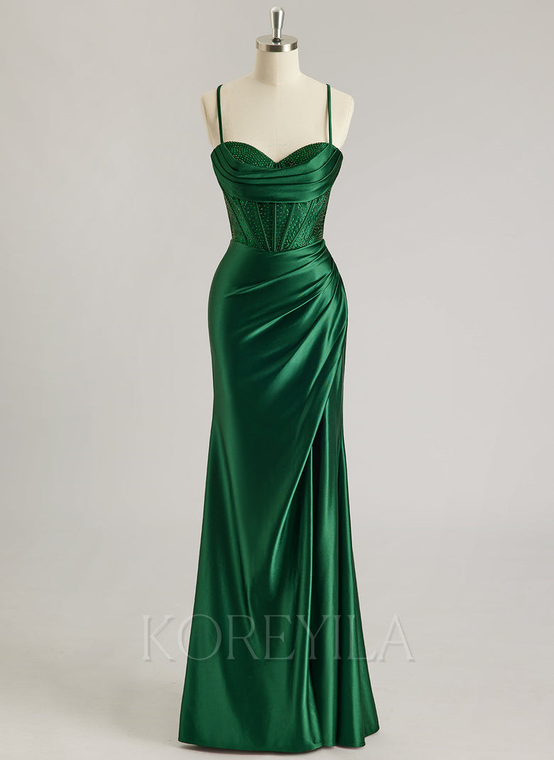Spaghetti Straps Sweetheart Sexy Sparkle & Shine Vintage Beautiful Back Corset Modest Prom Dresses Rhinestone Jersey Sheath/Column Maxi Dress With Leg Slit