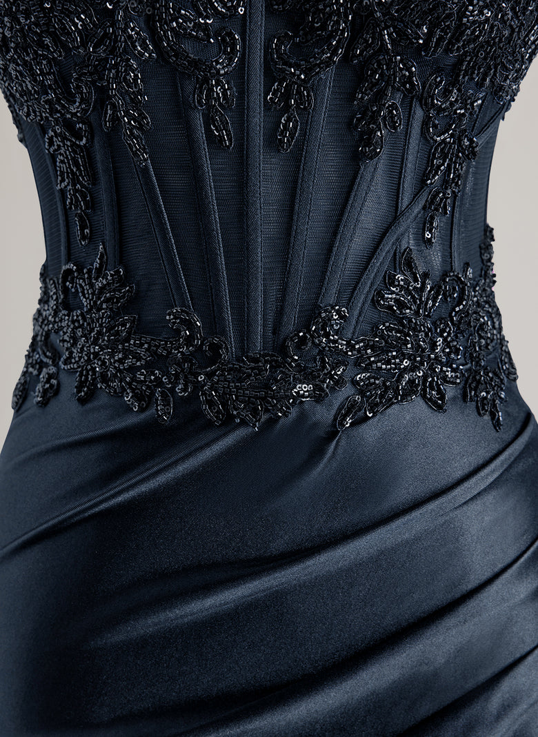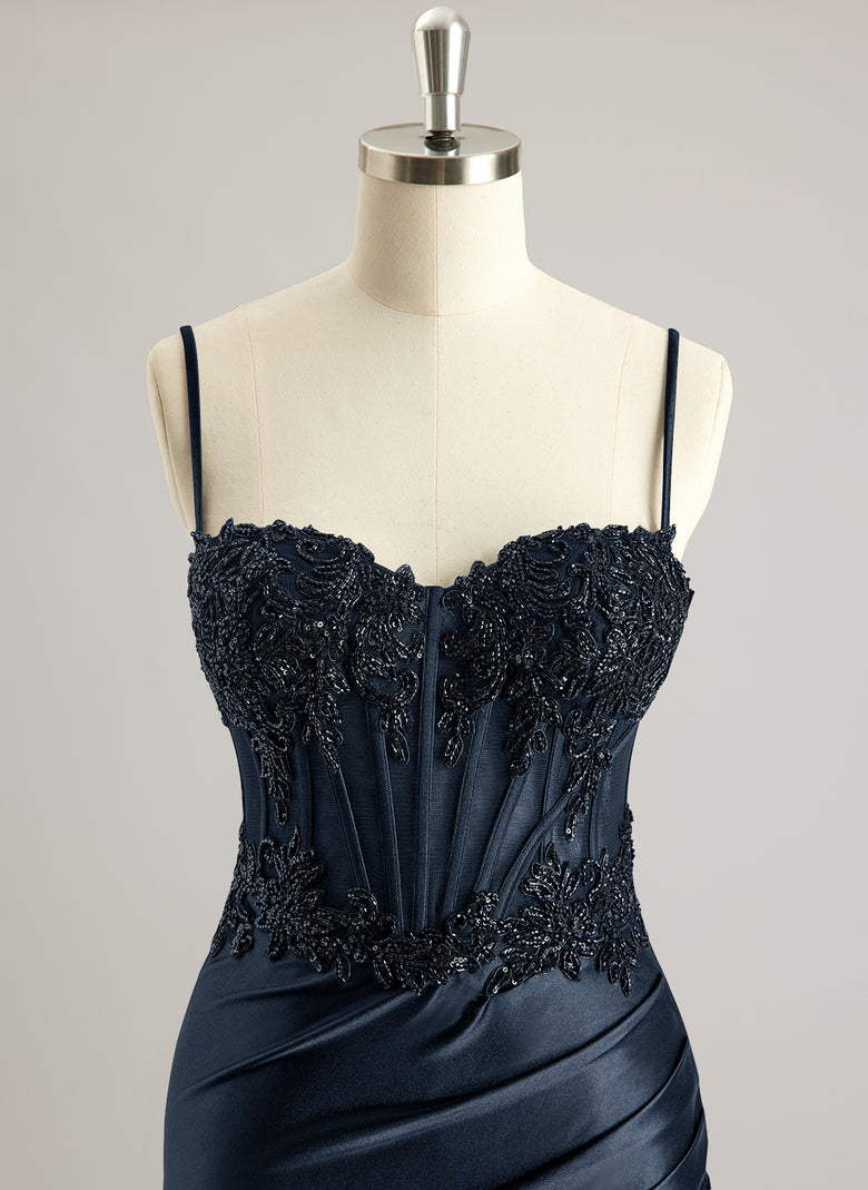 Spaghetti Straps Sweetheart Sexy Beautiful Back Corset Beading Sequins Jersey Sheath/Column Maxi Dress With Leg Slit