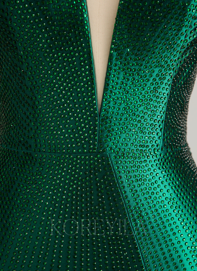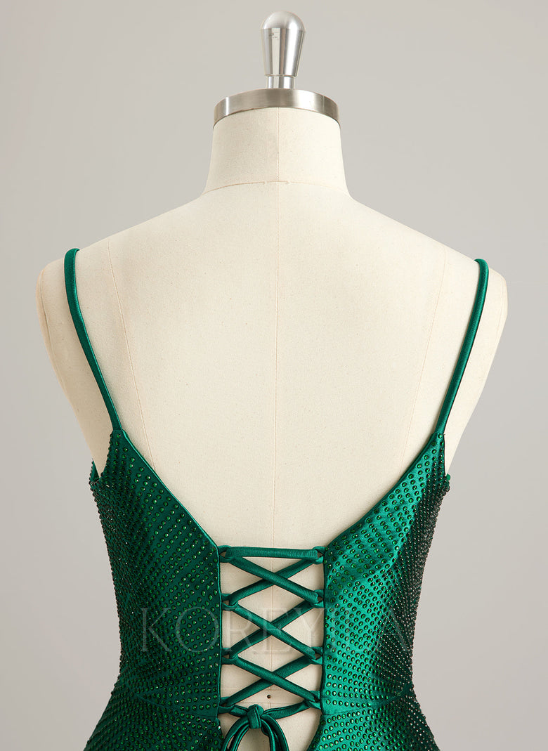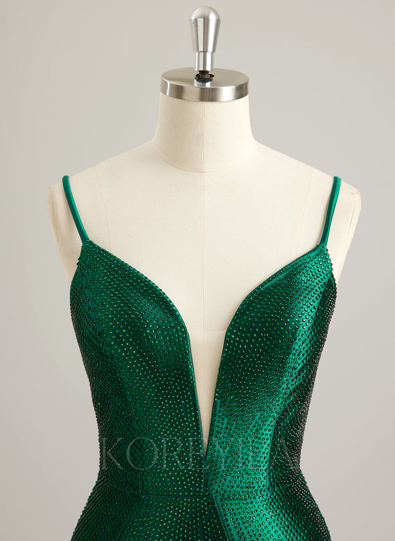 Spaghetti Straps V-Neck Sexy Sparkle & Shine Simple Night Out Beautiful Back Rhinestone Jersey Sheath/Column Maxi Dress With Leg Slit