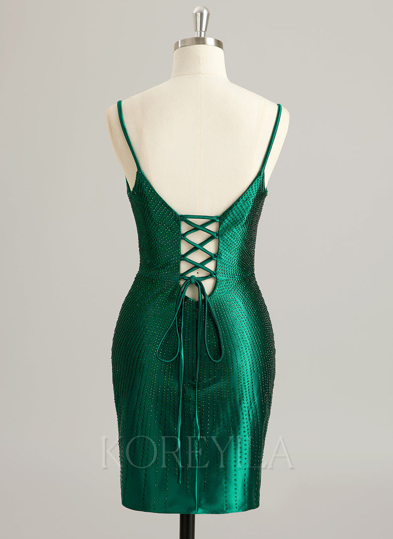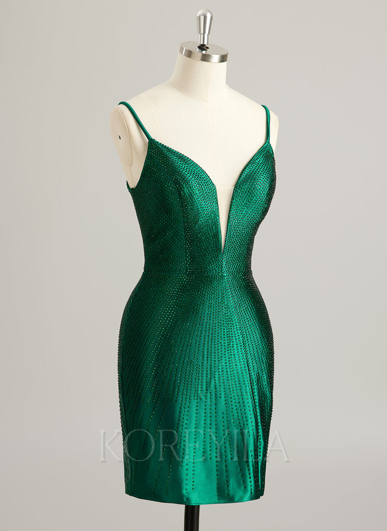 Sheath/Column V-Neck Short/Mini Jersey Prom Dresses With Rhinestone