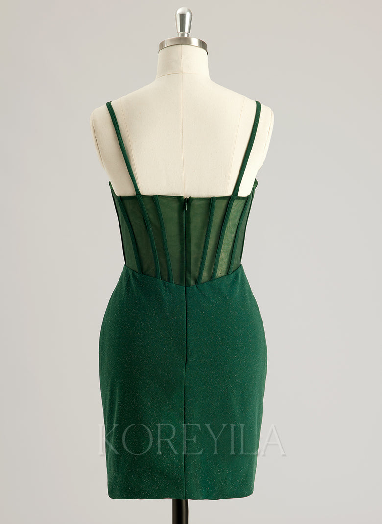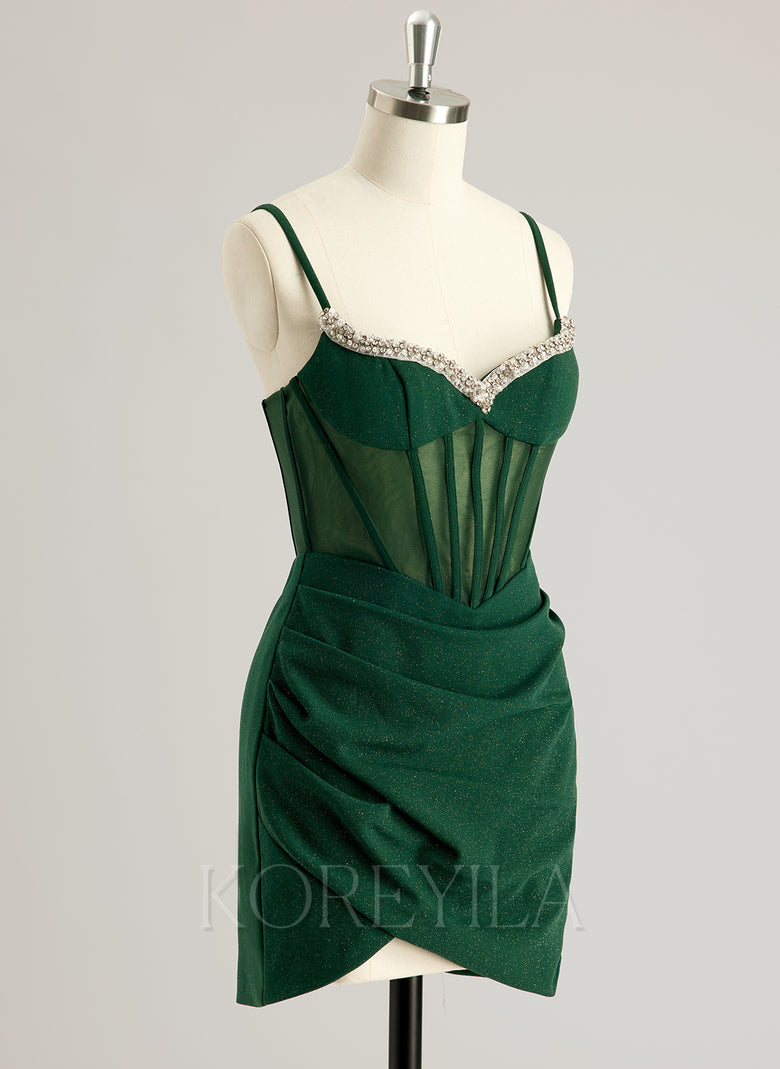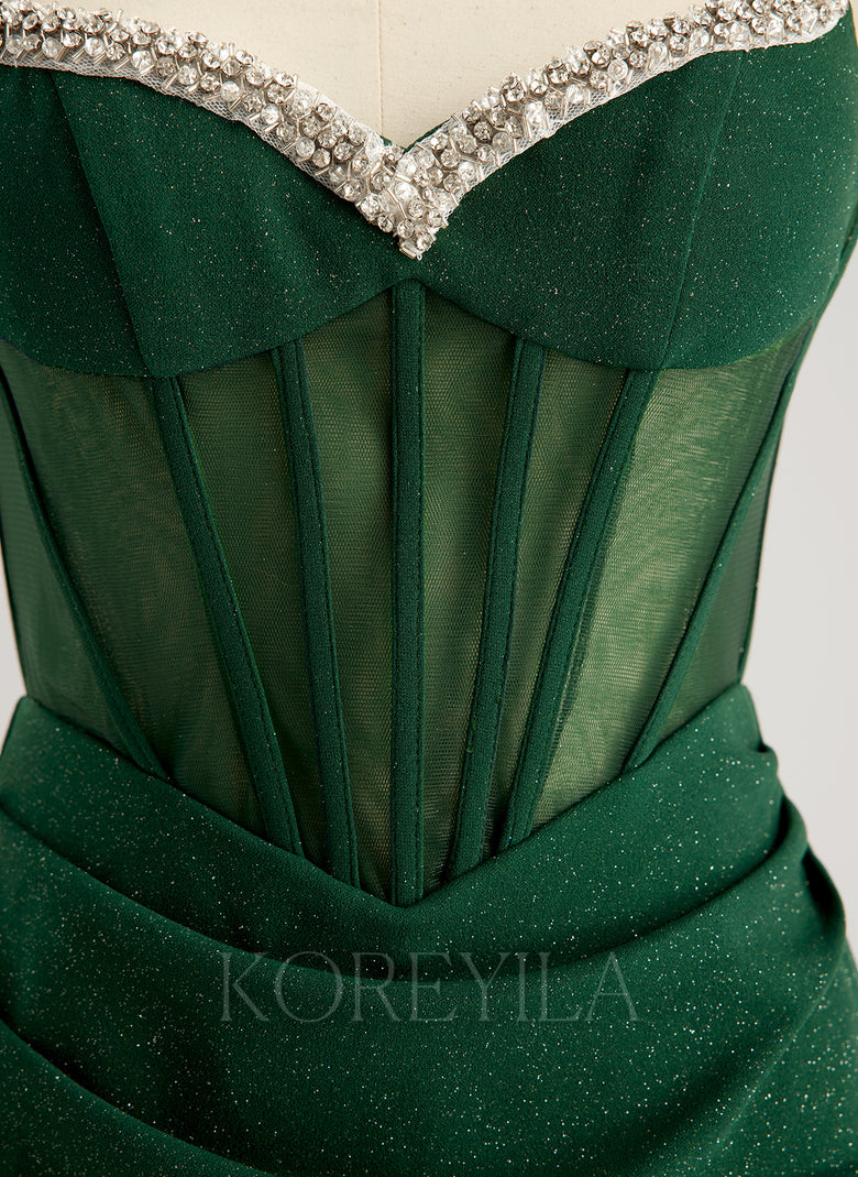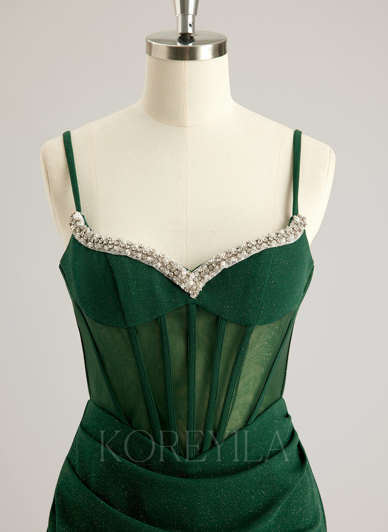 Spaghetti Straps V-Neck Sexy Sparkle & Shine Beautiful Back Corset Beading Rhinestone Jersey Sheath/Column Maxi Dress With Leg Slit