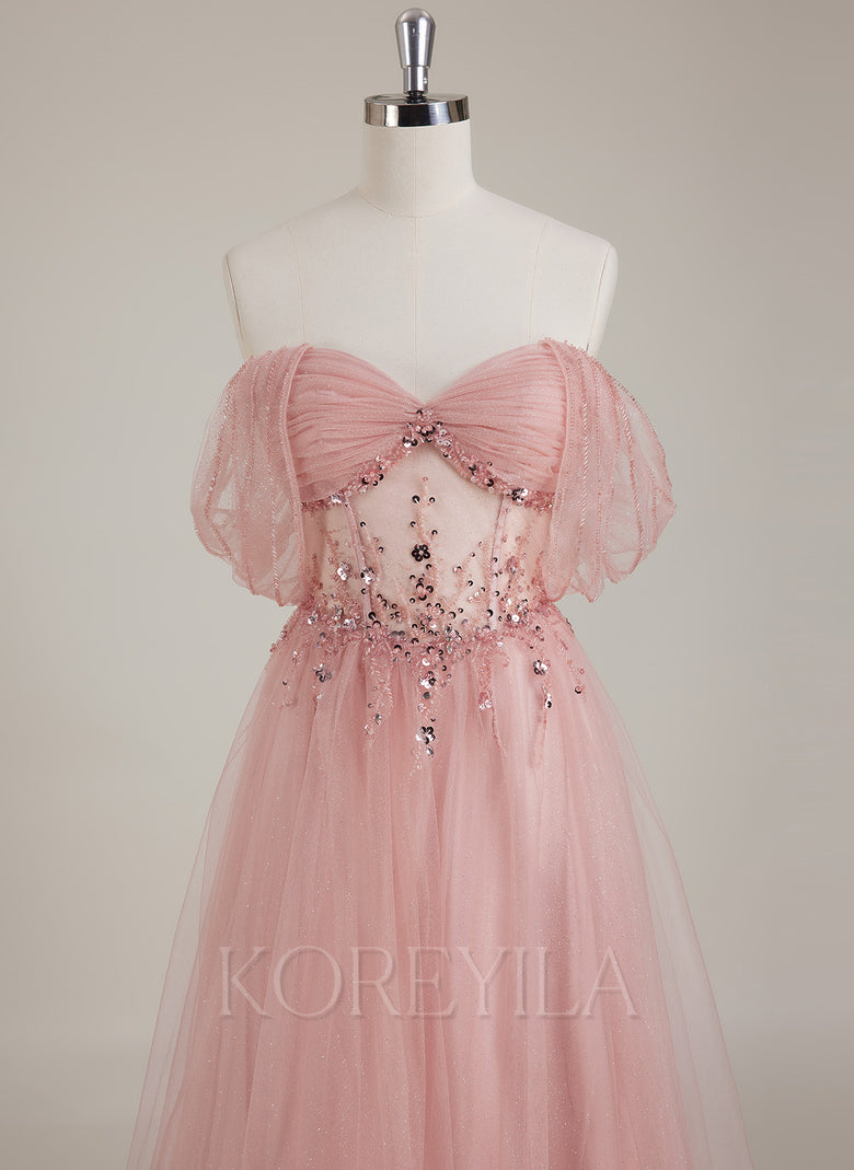 Enhance your elegance with our stunning Sleeveless Sweetheart Pleated Sequins Tulle Ball-Gown/Princess Maxi Dress. The sweetheart neckline and pleated skirt create a flattering silhouette. Sequins add the perfect touch of sparkle while tulle adds volume and movement. Perfect for formal events or special occasions.