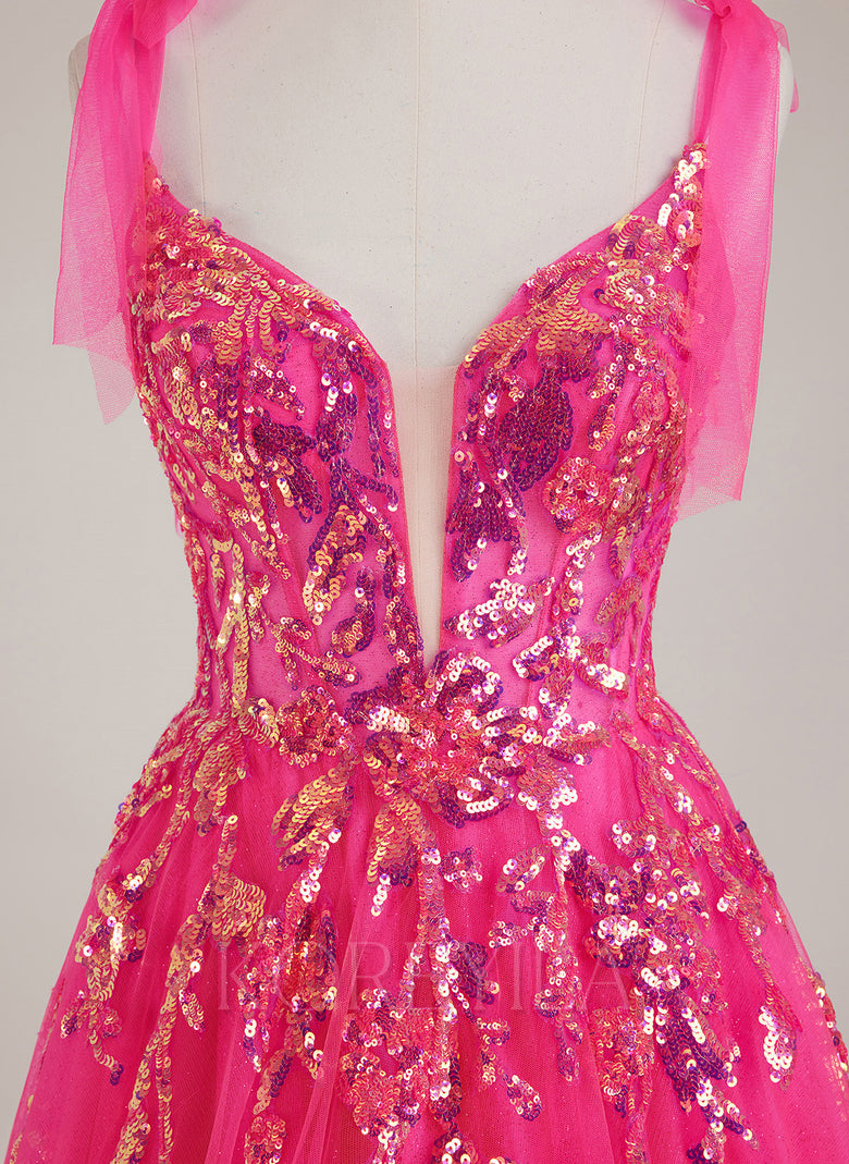Elevate your style with our Sleeveless V-Neck Sequins Tulle Ball-Gown/Princess Maxi Dress. The elegant V-neck and flowy tiers of tulle create a flattering fit. Shimmering sequins add a touch of glam to this timeless dress. Perfect for special occasions and making a statement.