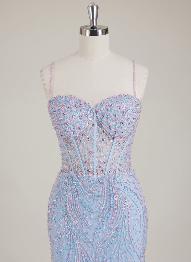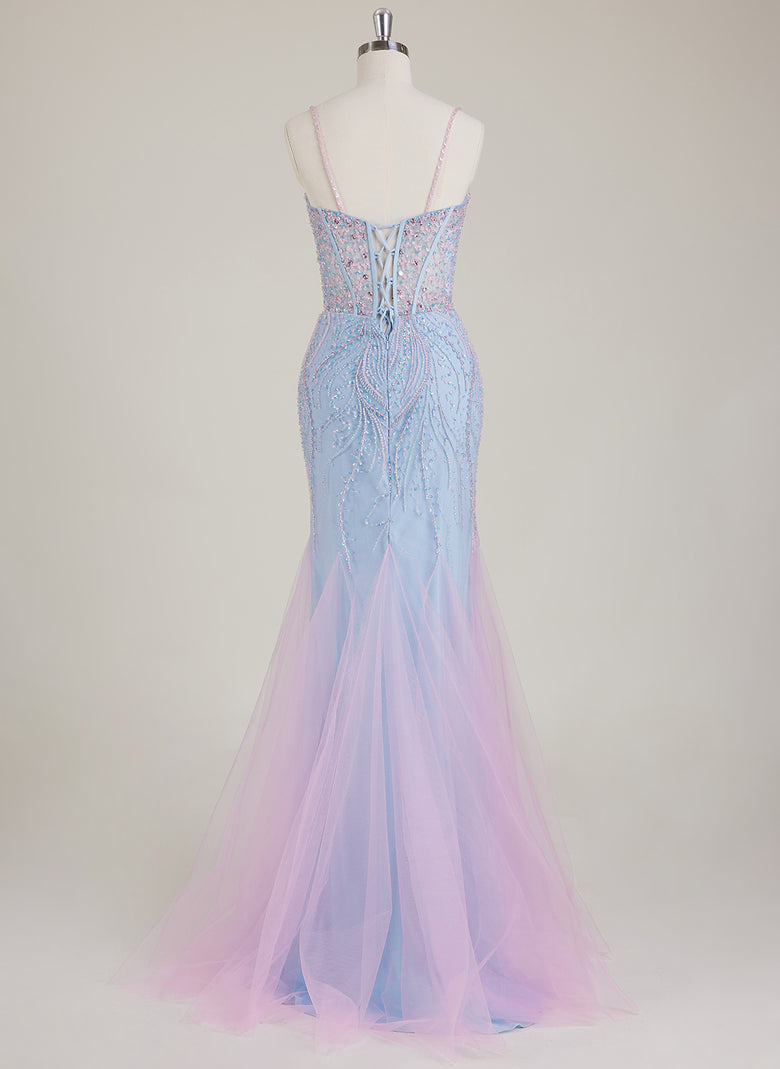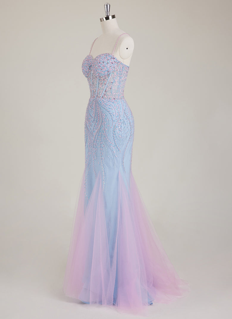 This Spaghetti Straps Sweetheart Rhinestone Sequins Tulle Trumpet/Mermaid Maxi Dress is a stunning choice for any formal occasion. The sweetheart neckline and sequin embellishments add a touch of glamour, while the trumpet/mermaid silhouette flatters all body types. Made with high-quality tulle fabric, this dress is comfortable and elegant.
