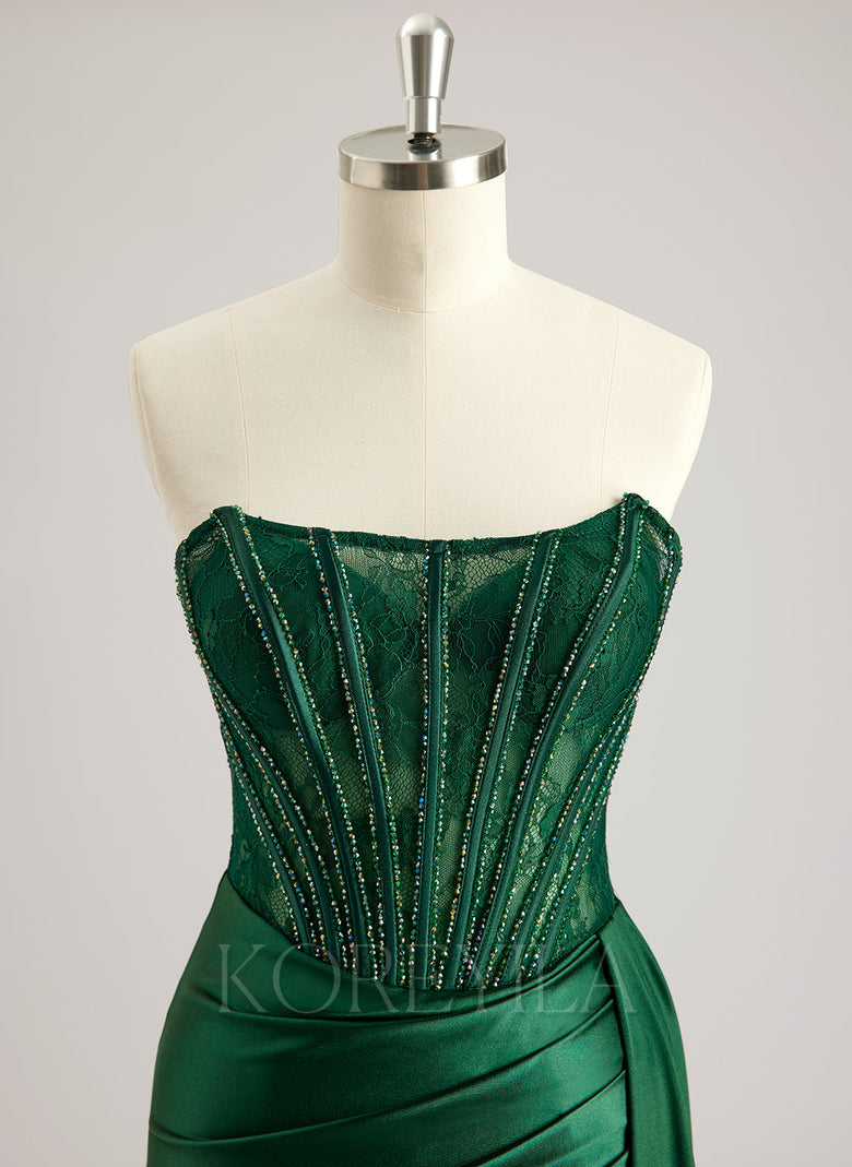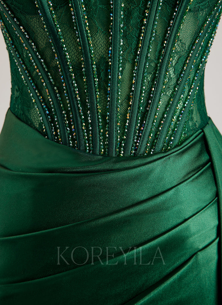 Sleeveless Scoop Elegant Sexy Sparkle & Shine Vintage Beautiful Back Corset Beading Lace Trumpet/Mermaid Maxi Dress With Leg Slit