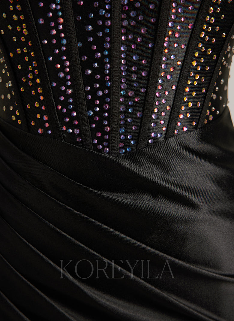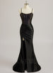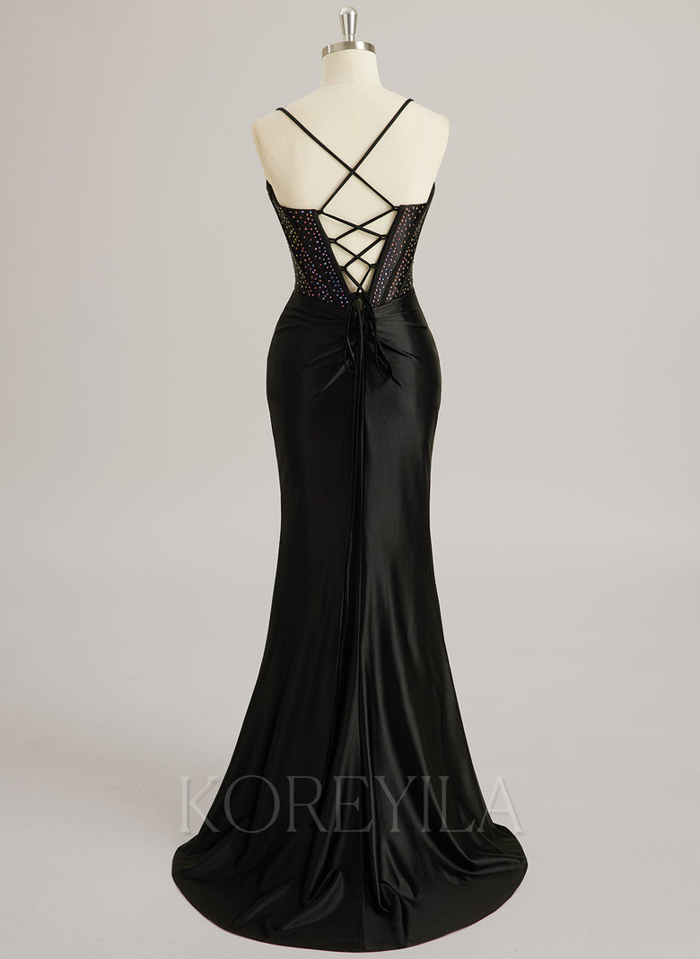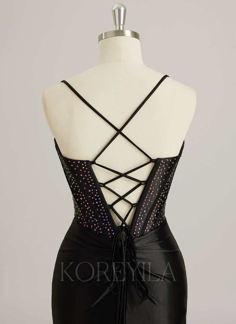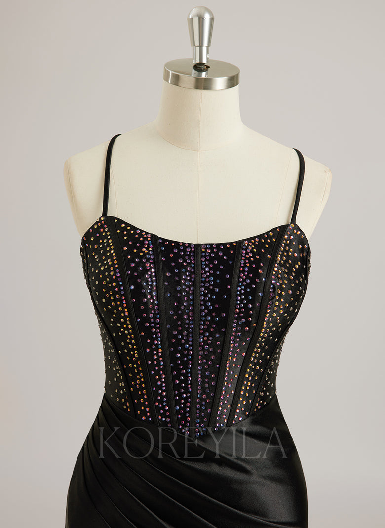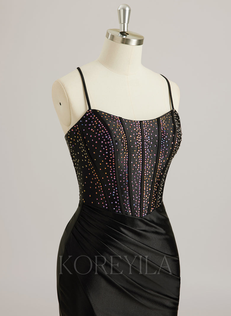 Spaghetti Straps Scoop Sexy Sparkle & Shine Beautiful Back Rhinestone Silky Satin Trumpet/Mermaid Maxi Dress With Leg Slit