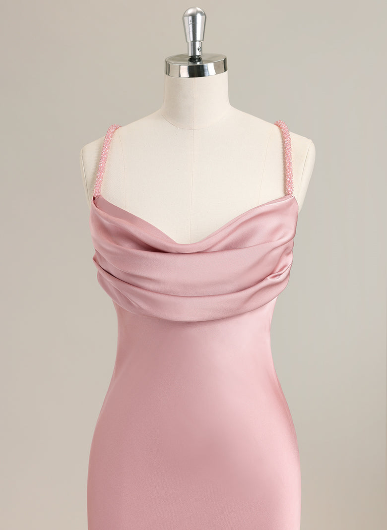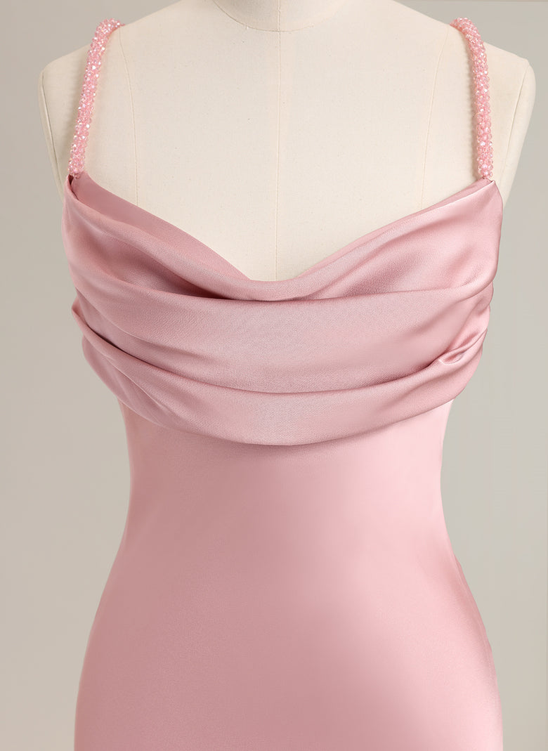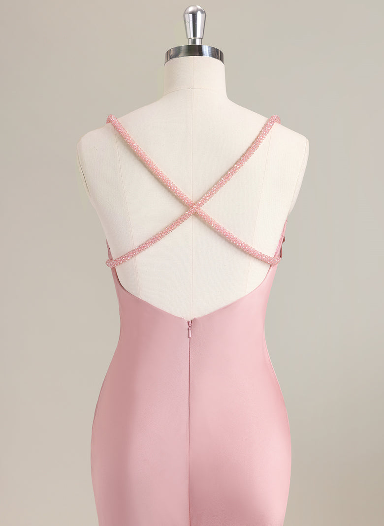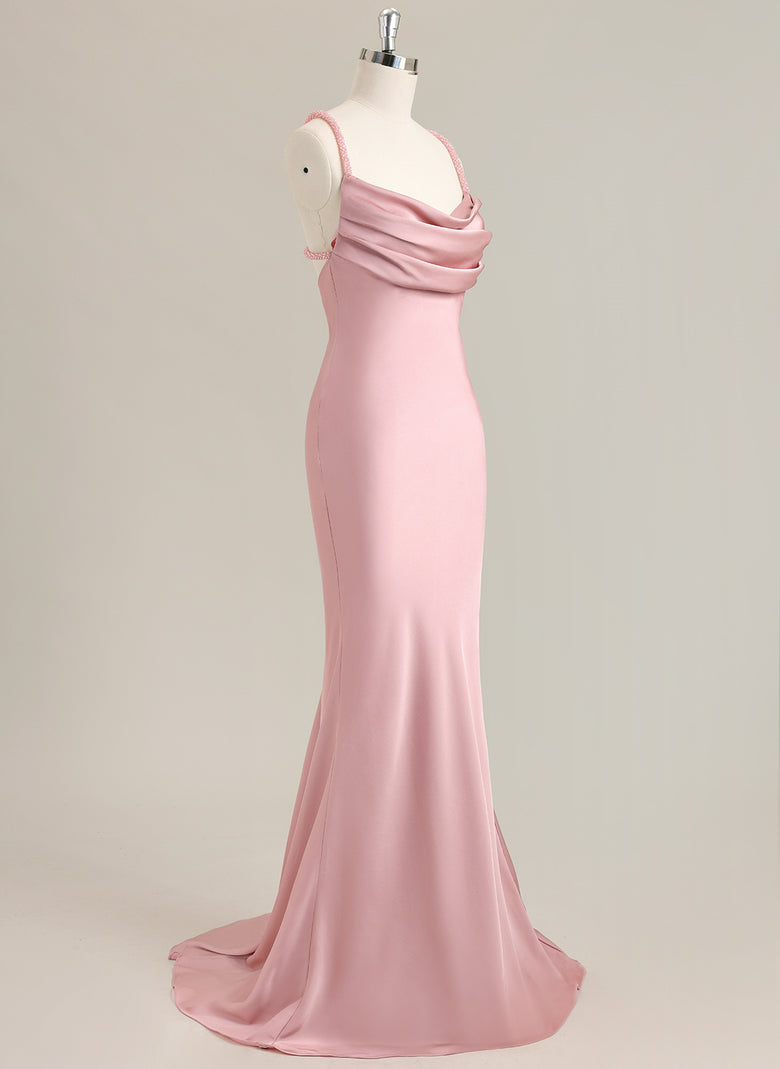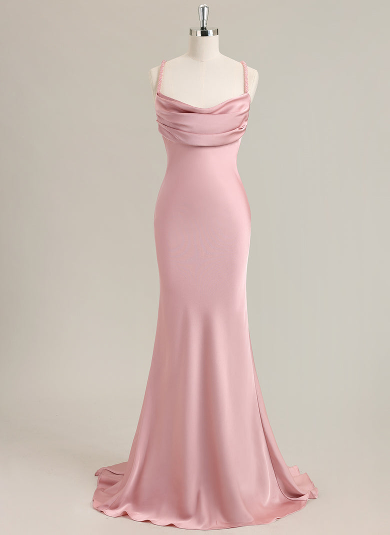 This elegant trumpet/mermaid prom dress features a sleeveless design and a luxurious satin fabric that gracefully contours the body. The sweep train adds a dramatic yet refined touch, perfect for making a memorable entrance. Ideal for formal events, this dress combines classic silhouette with modern sophistication, ensuring both comfort and style throughout your special evening.