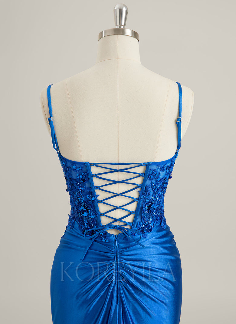 Spaghetti Straps V-Neck Sexy Sparkle & Shine Beautiful Back Modest Prom Dresses Pleated Sequins Lace Trumpet/Mermaid Maxi Dress With Leg Slit