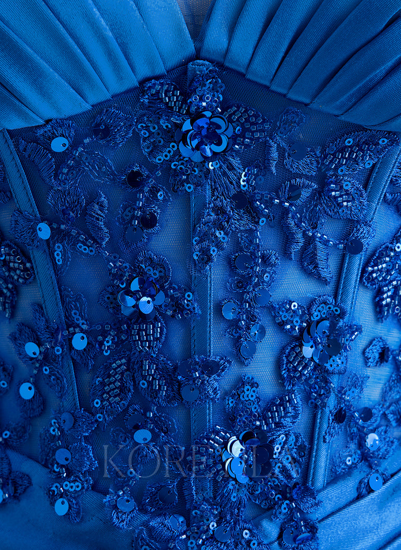 Floral Applique V-Neck Tulle A-line Maxi Dress With Sequins